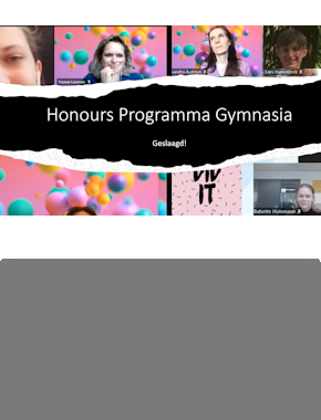 Lars, Elin en Babette hebben hun project zo goed uitgewerkt dat ze alle drie nu het HPG Testimonium en een mooi kunstwerk krijgen van de Stichting Het Zelfstandig Gymnasium. De uitreiking was dit jaar helaas digitaal via Teams, maar daardoor niet minder waardevol.